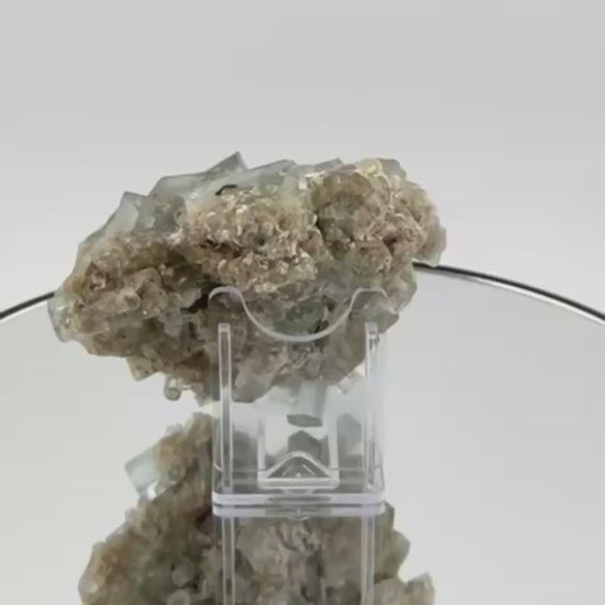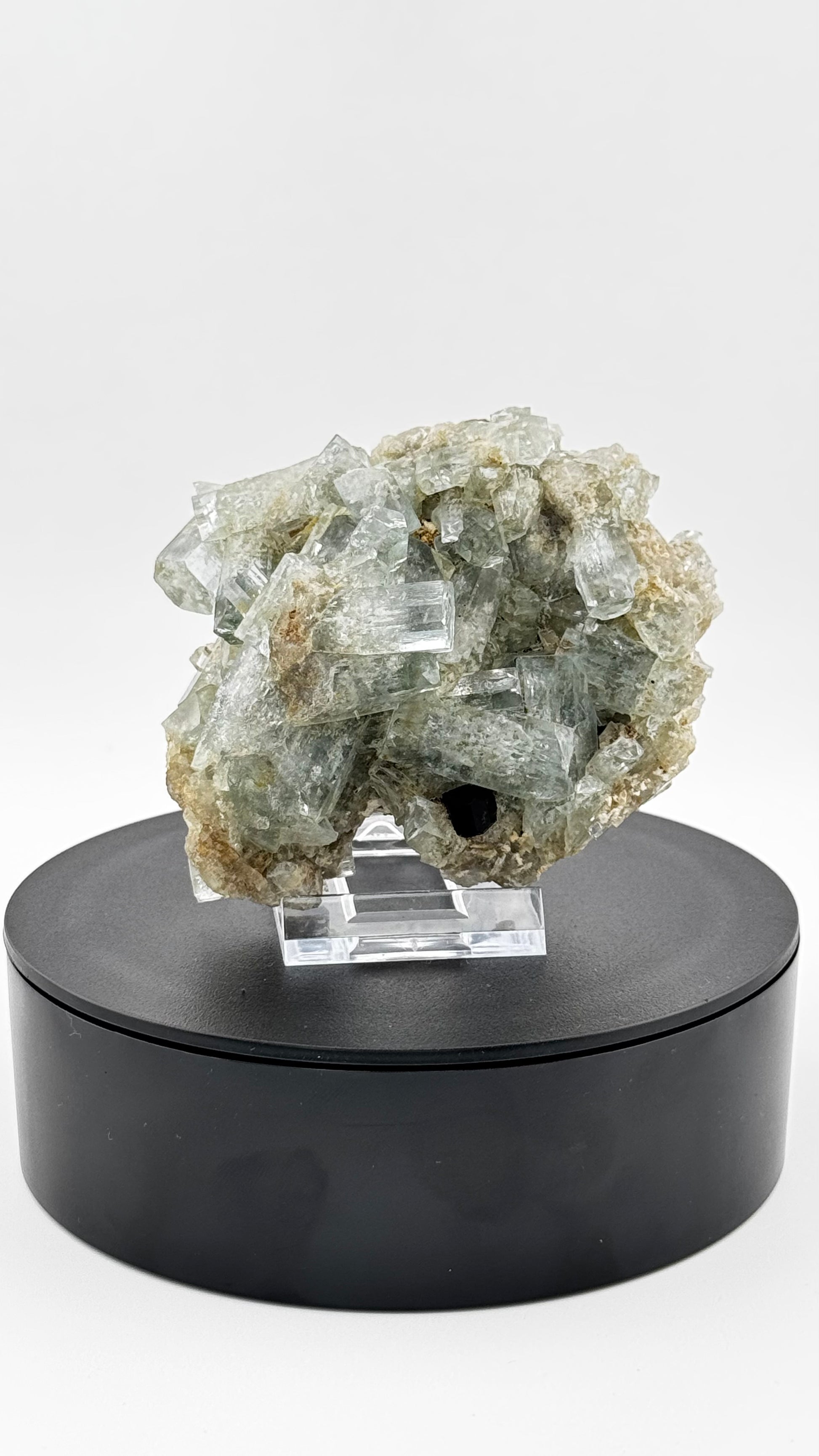 The mineral is presented on an acrylic glass stand, which optimally showcases the floating formation and allows for a 360° view.