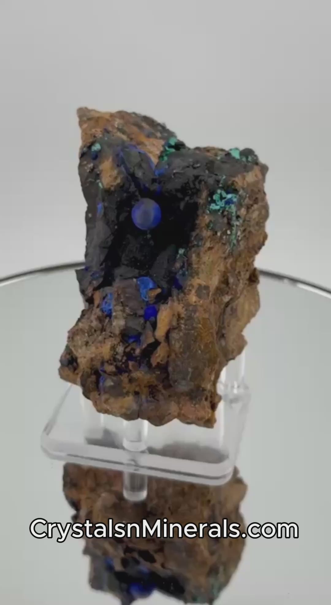 • Farbe: Kobaltblau, azurblau (Azurit), türkisgrün (Malachit), rostbraun, orange (Oxidationszonen), schwarz (Matrix)