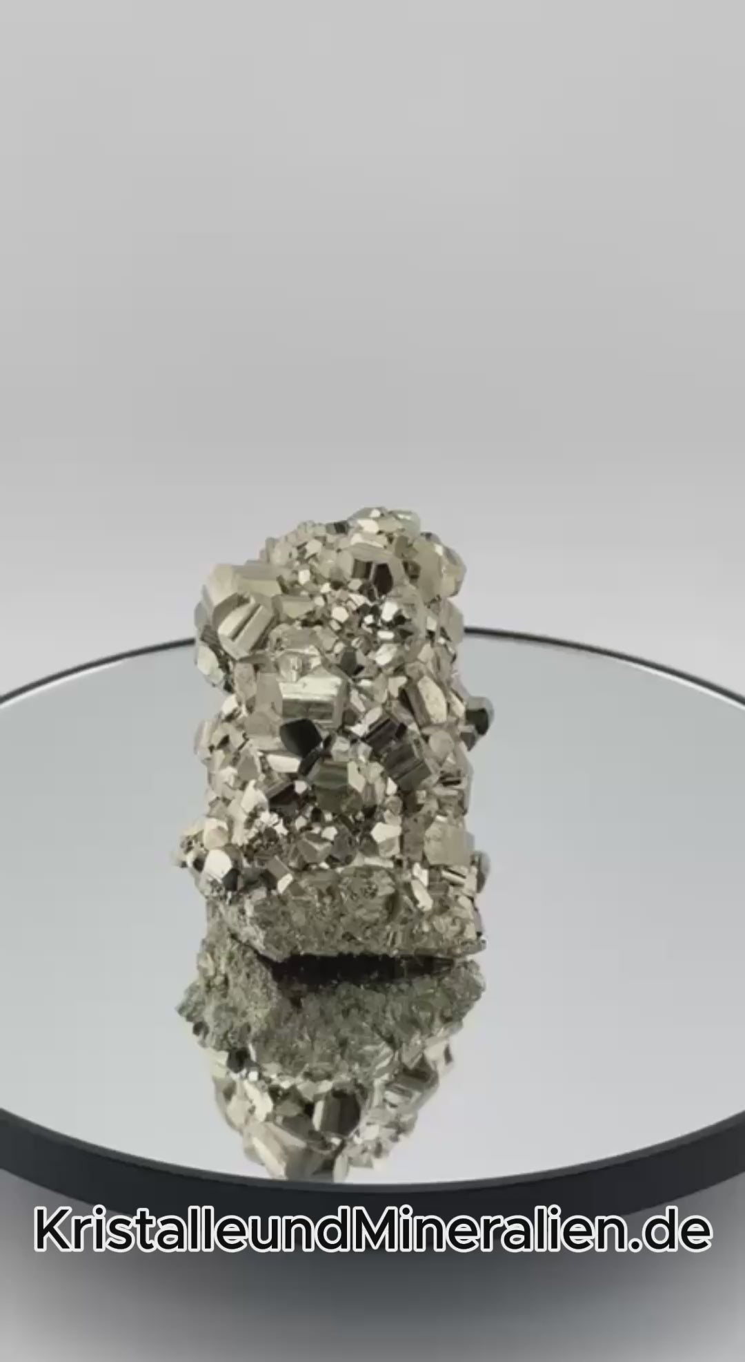 Pyrite's cubic shape is textbook perfect: ideal 90° angles, smooth crystal faces, and sharp edges. This geometric precision arises from the mineral's cubic crystal system. Many crystals also exhibit fine striations on their faces – a characteristic feature of pyrite that distinguishes it from similar-looking minerals like gold.